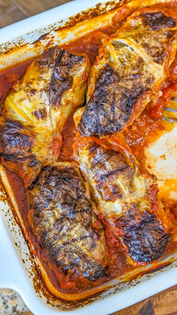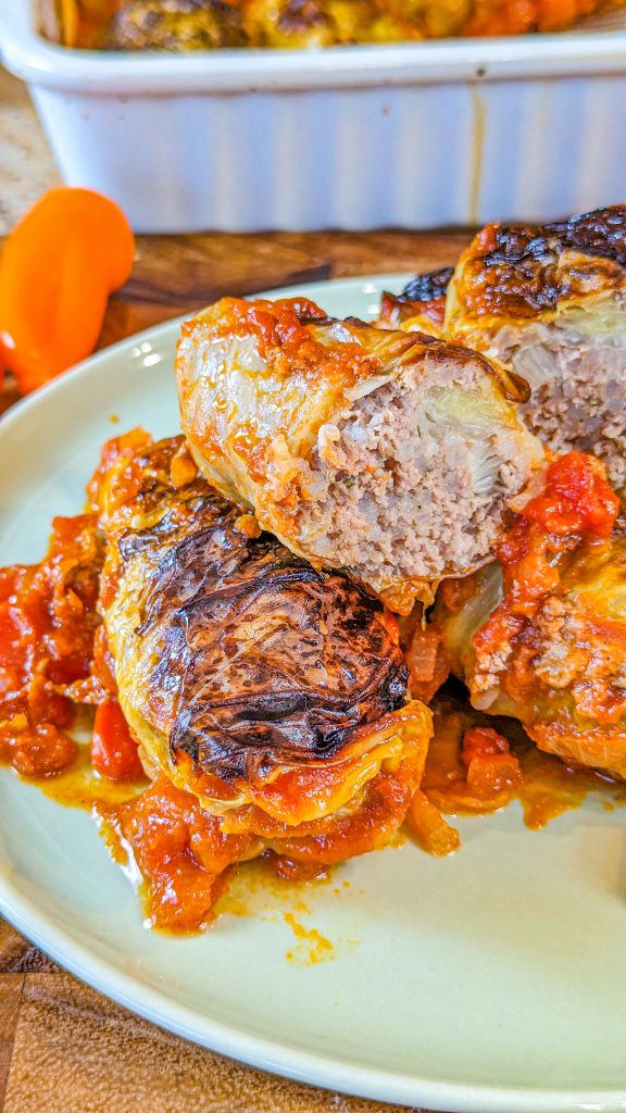 Stuffed cabbage rolls seem to have been around forever and they’re a really delicious option if you have cabbage leaves to use up. These are filled with beef, rice and seasonings and then served in a tangy homemade tomato sauce.