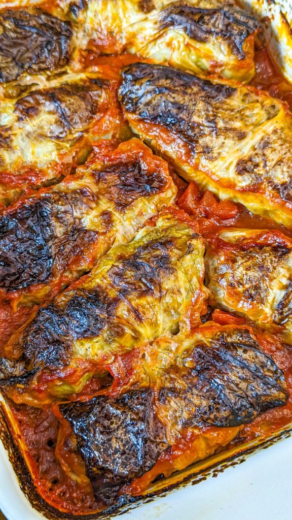 15. Pour the rest of the sauce on top, then cover with foil and bake for 1 hour 30 minutes or until the cabbage is tender.