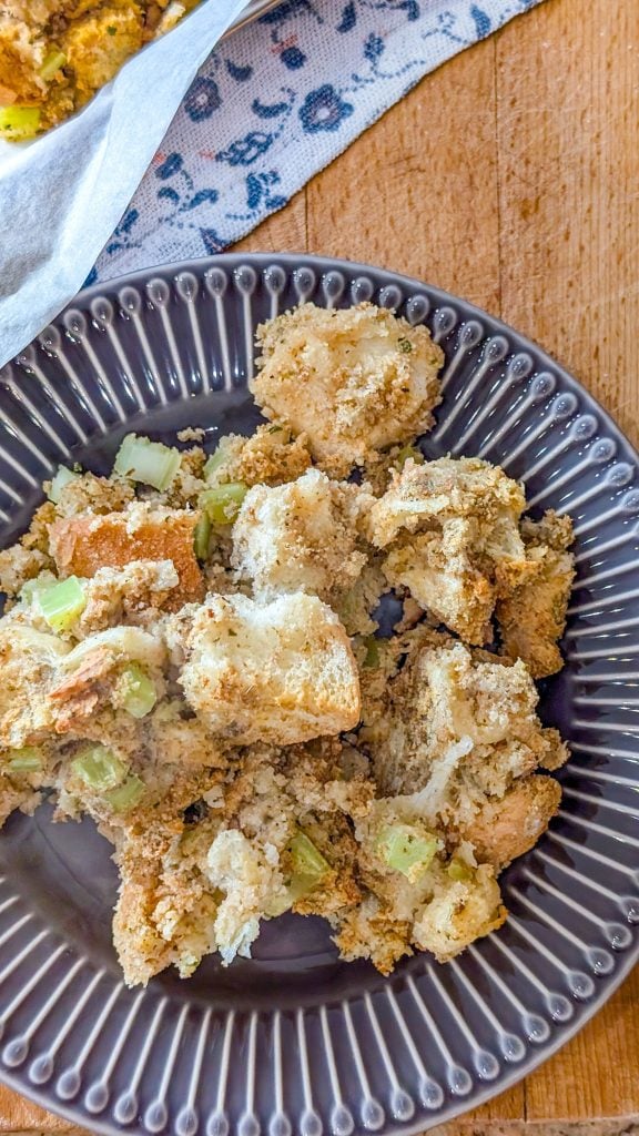 Stuffing is versatile! Serve it alongside roasted turkey for the classic Thanksgiving spread, or pair it with roast chicken, ham, or even a holiday pork tenderloin. Some people love topping it with a little extra gravy for added richness. You can also turn leftovers into stuffing muffins or sandwiches, which are perfect for post-holiday meals.