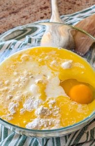 1. Whisk the egg and melted butter into the milk mixture. Make a well in the center of the dry ingredients and gently pour in the wet ingredients. Stir just until combined; a few lumps are okay—do not overmix.
