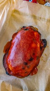 - Remove meatloaf from the oven after 35 minutes. Pour the glaze evenly over the top. Return the meatloaf to the oven and bake an additional 10 minutes.