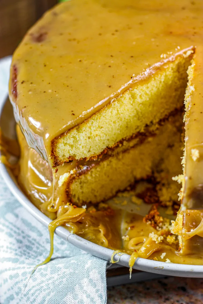 This Turtle Caramel Cake is a decadent dessert that satisfies your cravings. Combining a moist cake, rich caramel layer, and nutty flavor of pecans creates a symphony of flavors ready to impress the ones with the most refined taste.