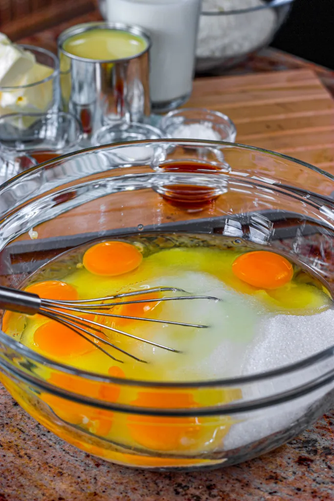 - Beat the cake mix, eggs, oil, and milk with a hand mixer until smooth.