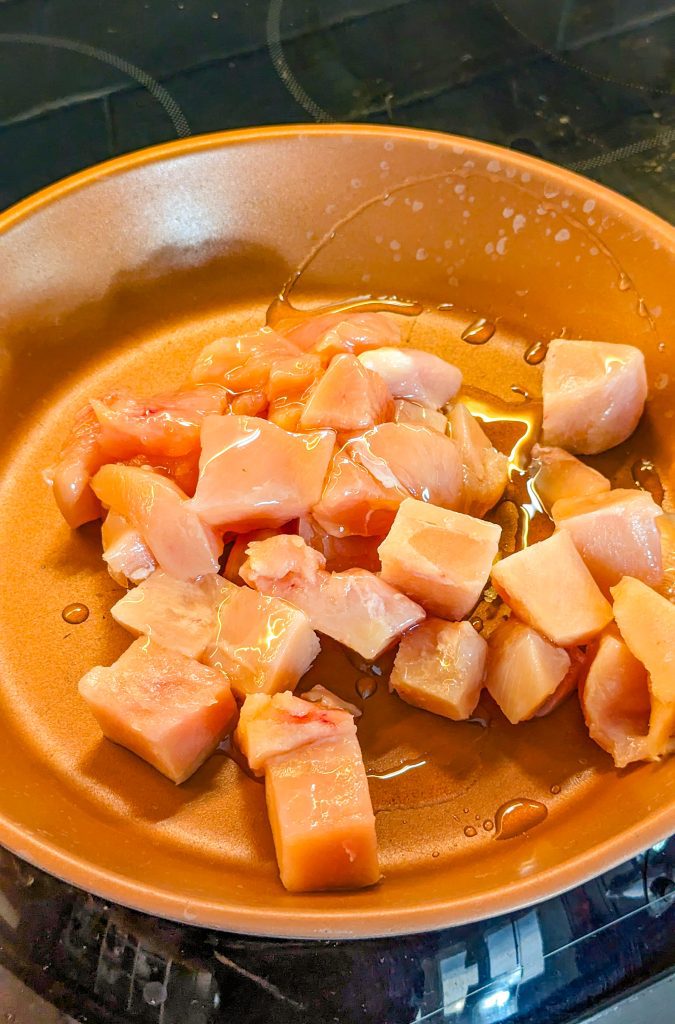 • 1¼ pounds boneless skinless chicken breast, in bite-sized pieces